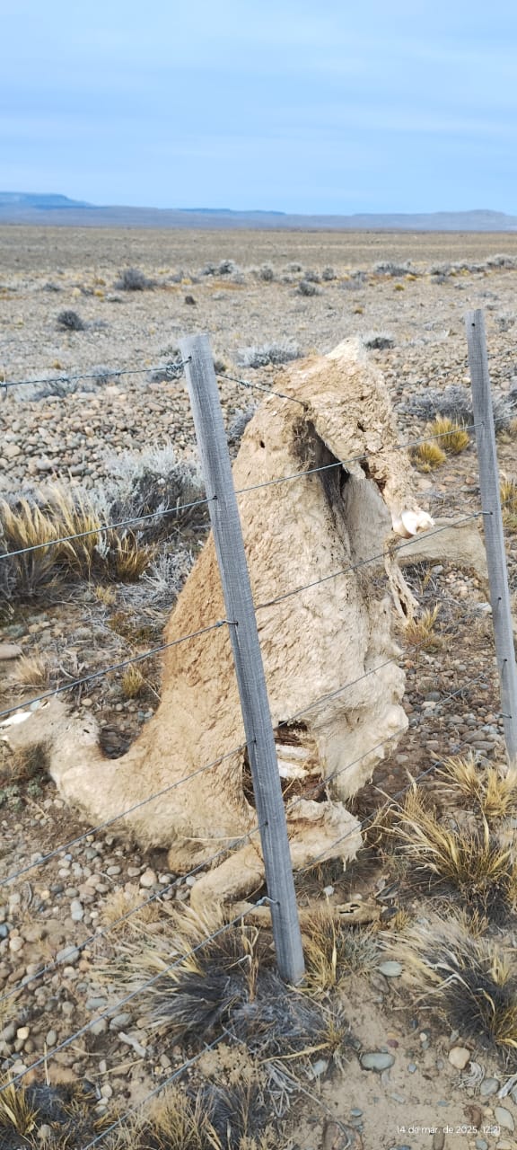Assim, ficamos tremendamente tristes ao descobrirmos que os criadores de ovelhas, que são muitos na Patagônia, colocam arames farpados nas cercas que margeiam todas as estradas patagônicas, para que os guanacos não as pulem, o que os acaba deixando presos nelas.